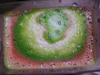 So, this morning, my husband woke me early and asked me if I could make him a raw lunch and a green smoothie. I jumped right on the opportunity to provide him something nutritious. If I didn't fix him some greens to go, he'd fix his usual 650mg can of sodium soup. This morning, I made a big green shake and split it 3 ways for me, hubs, and daughter, containing: